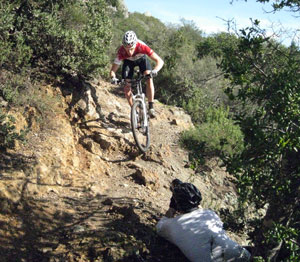 Here’s WTB pro rider and high school teacher, Yuri Hauswald, following Colin’s instruction: not the other way around. Before Colin started shooting, he looked at all angles of Tamarancho’s famous “Olly Oop” for what would look best through the camera. He also tried several lenses to see what looked best. The process took a while, but the pictures Colin took looked a lot better – and a lot more exciting – than what you see here. The point: take your time, try different combinations, and remember that it’s up to you to tell your subject, supermodel or rider-in-a-stupor, what to do and where to do it.