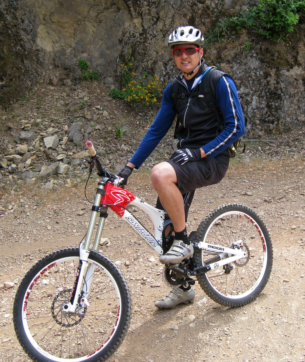 No doubt about this one! If you are lucky and tough enough to be riding a Santa Cruz V-10 with 8″ of travel in front and 10″ in the back, then there’s no choice: 20mm thru-axle retention system. You’ll also more than likely have a “double crown” fork like Jiro here on Santa Cruz Bicycles Founder Rob Roskopp’s personal bike.