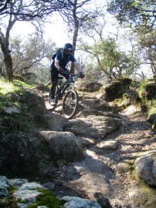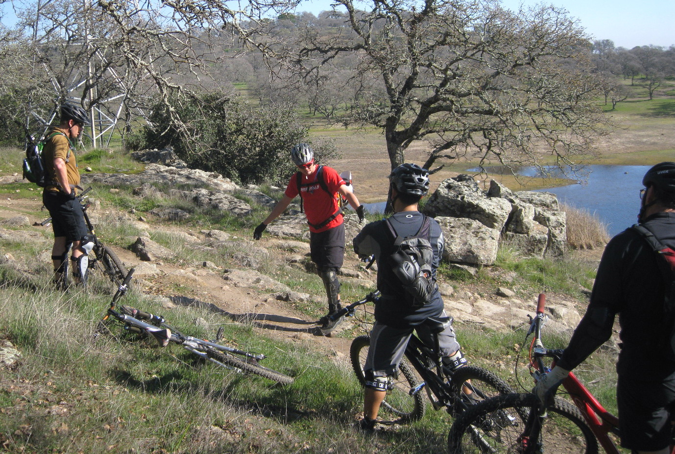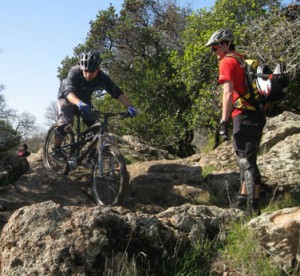 A sweet set up at Rockville for complex trail challenges. There are several, complex trail challenges, like this one that will really help the intermediate to advanced rider improve their skills. This is a particularly good one: it’s got some nice size rocks, a quick drop-down, and a tight turn that requires getting lots of things right at the same time.